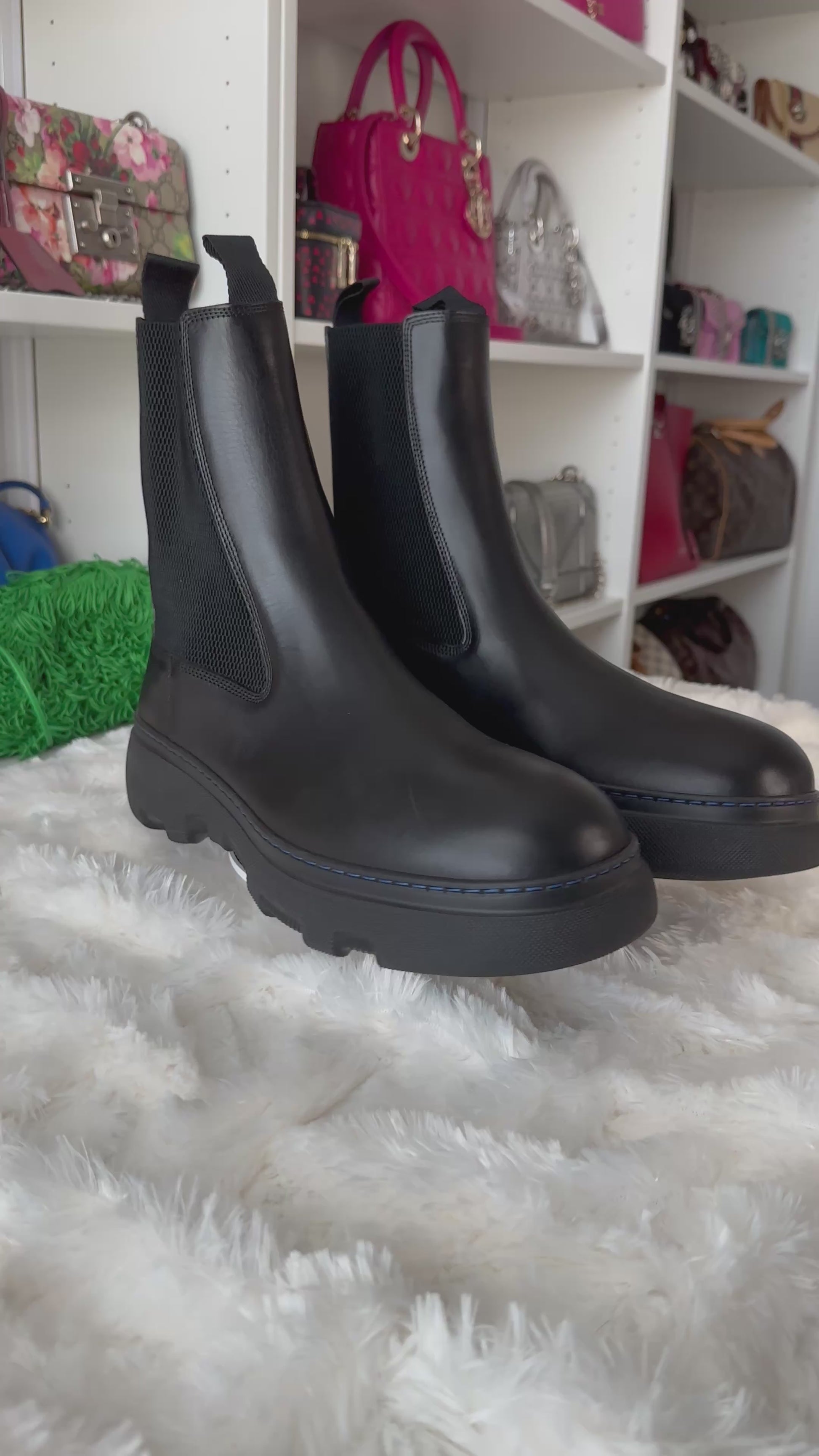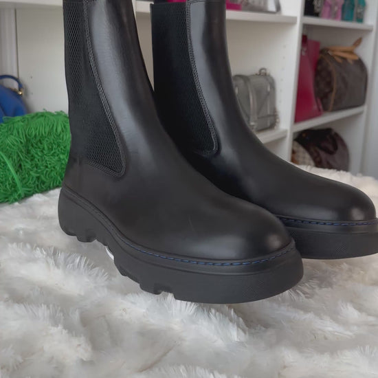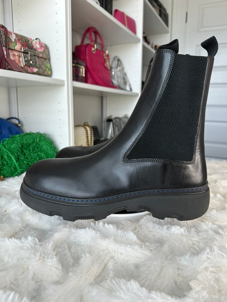 Burberry Men's Size 12.5 US | 45.5 EU Black Creeper Leather Chelsea Boots with Blue Sole