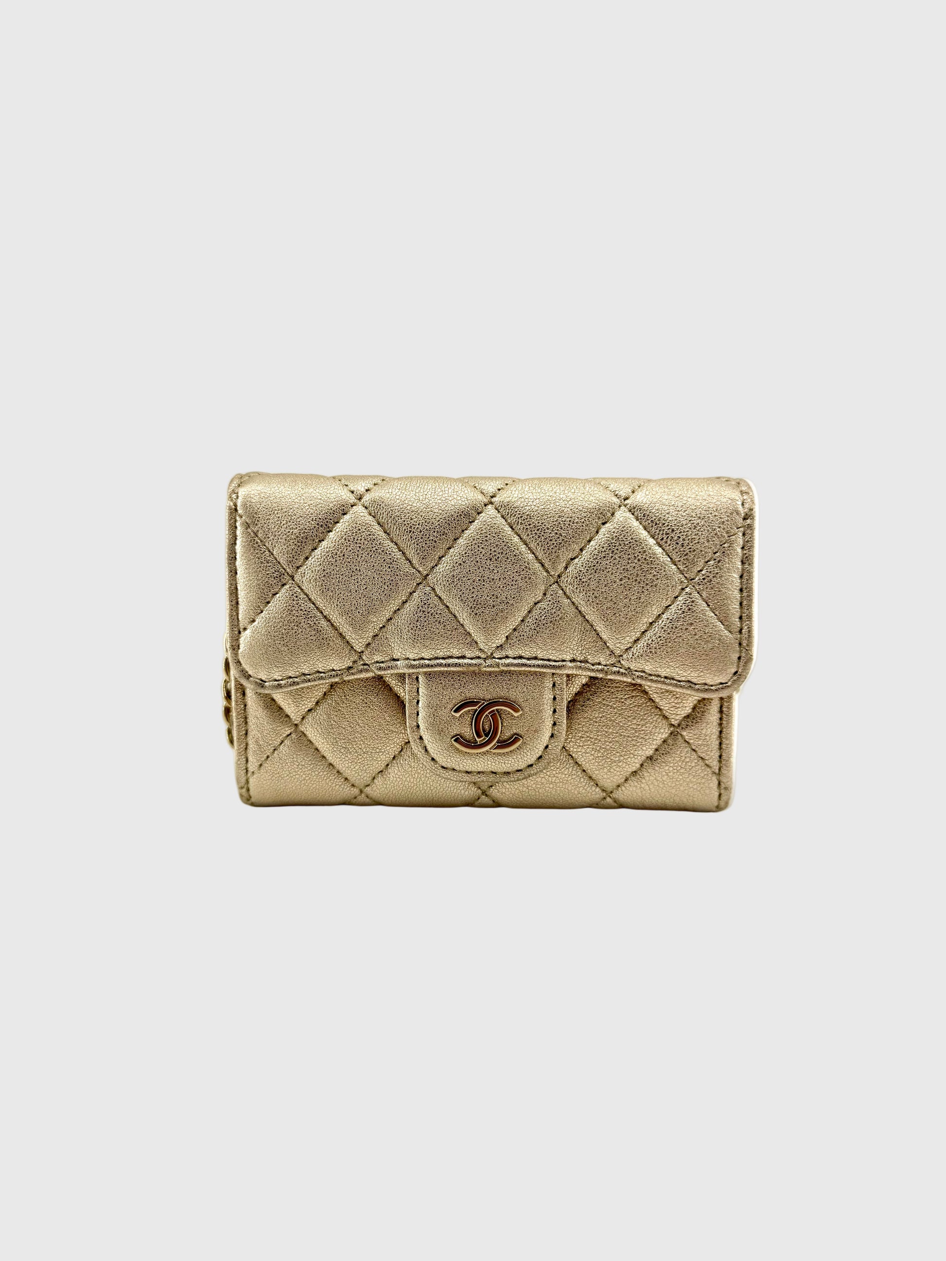 Chanel Classic Flap Gold Metallic Lambskin Crossbody/Belt Coin Bag
