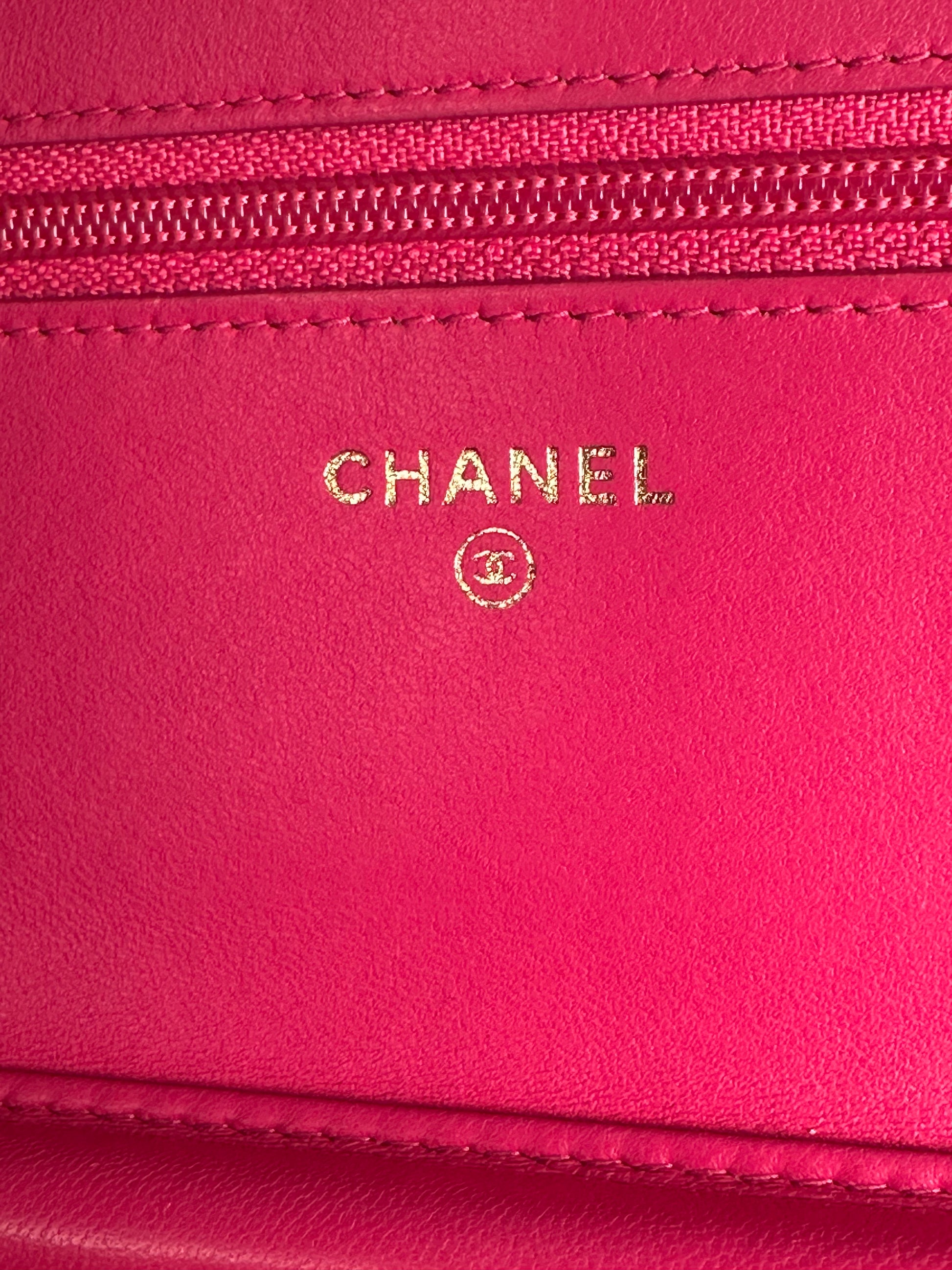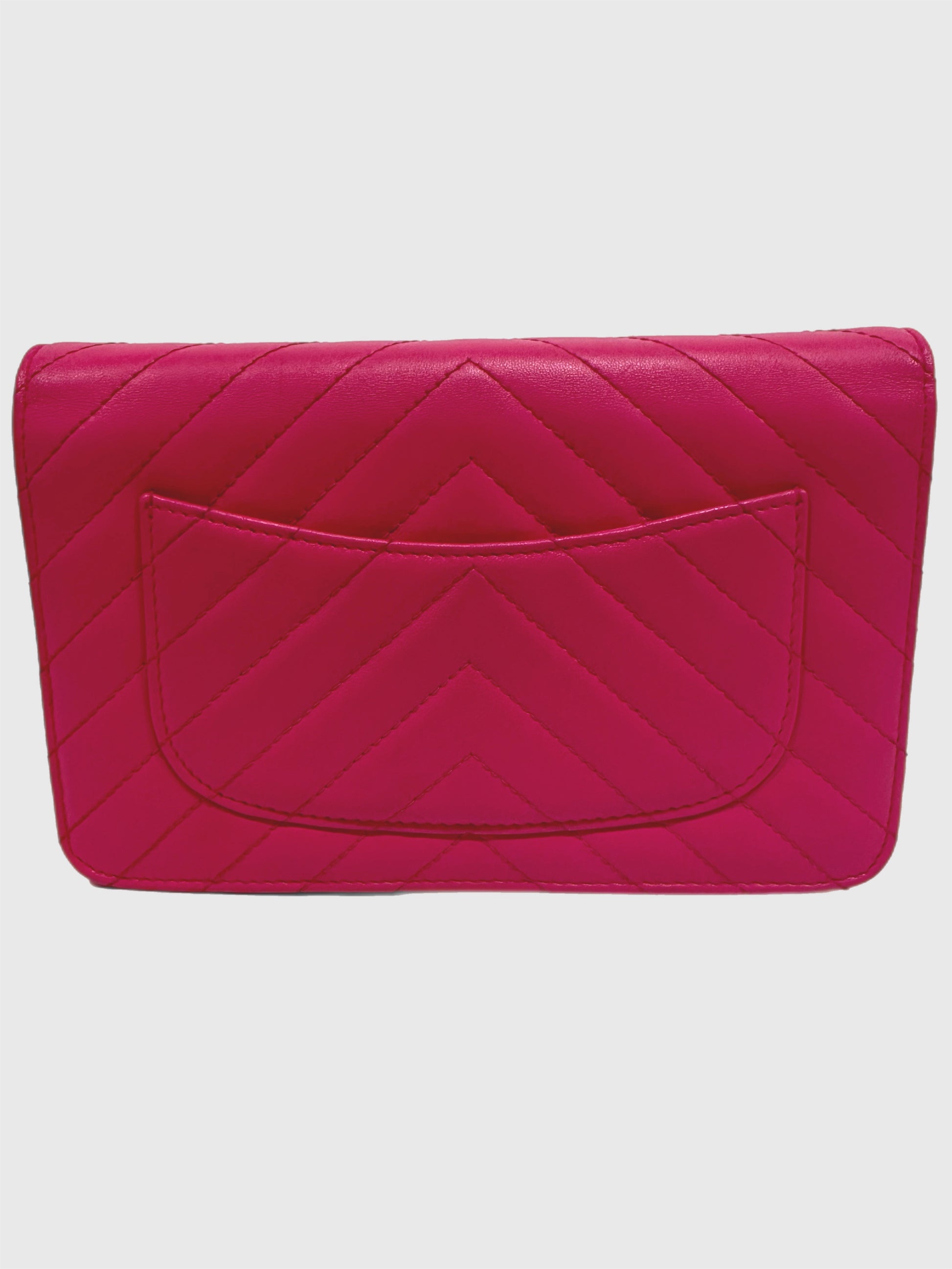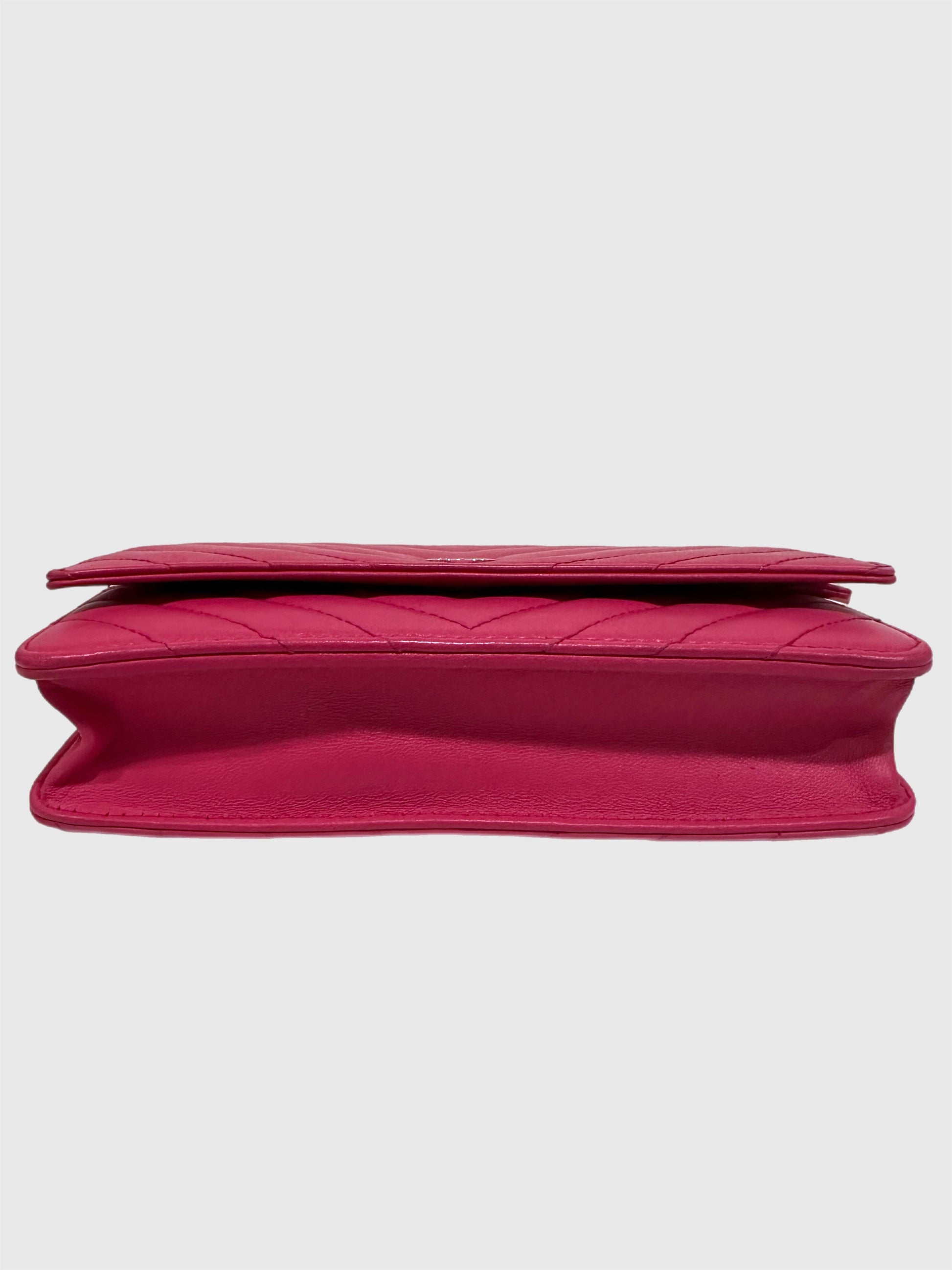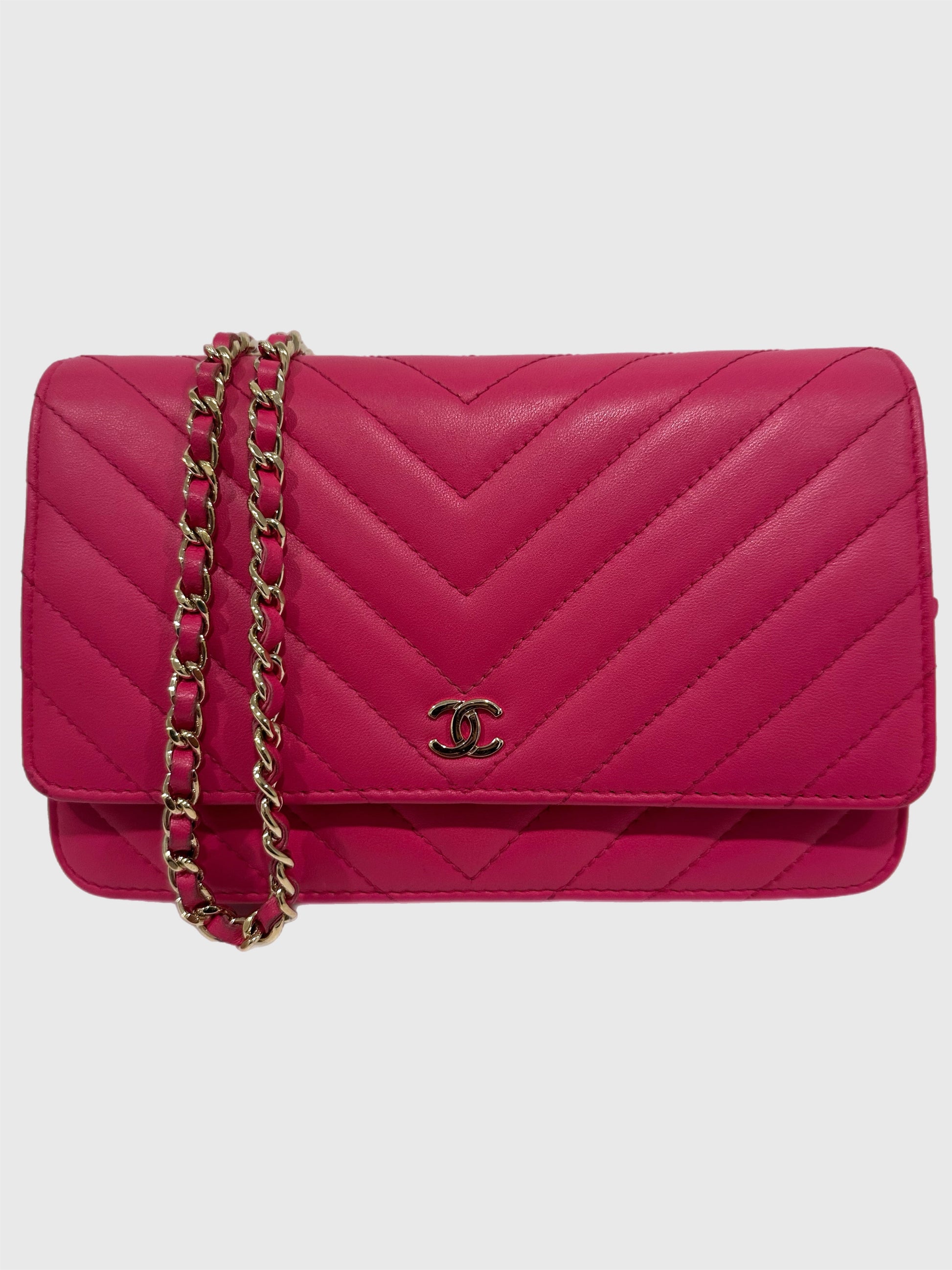 Chanel Pink Lambskin Leather Chevron Crossbody Wallet on Chain WOC