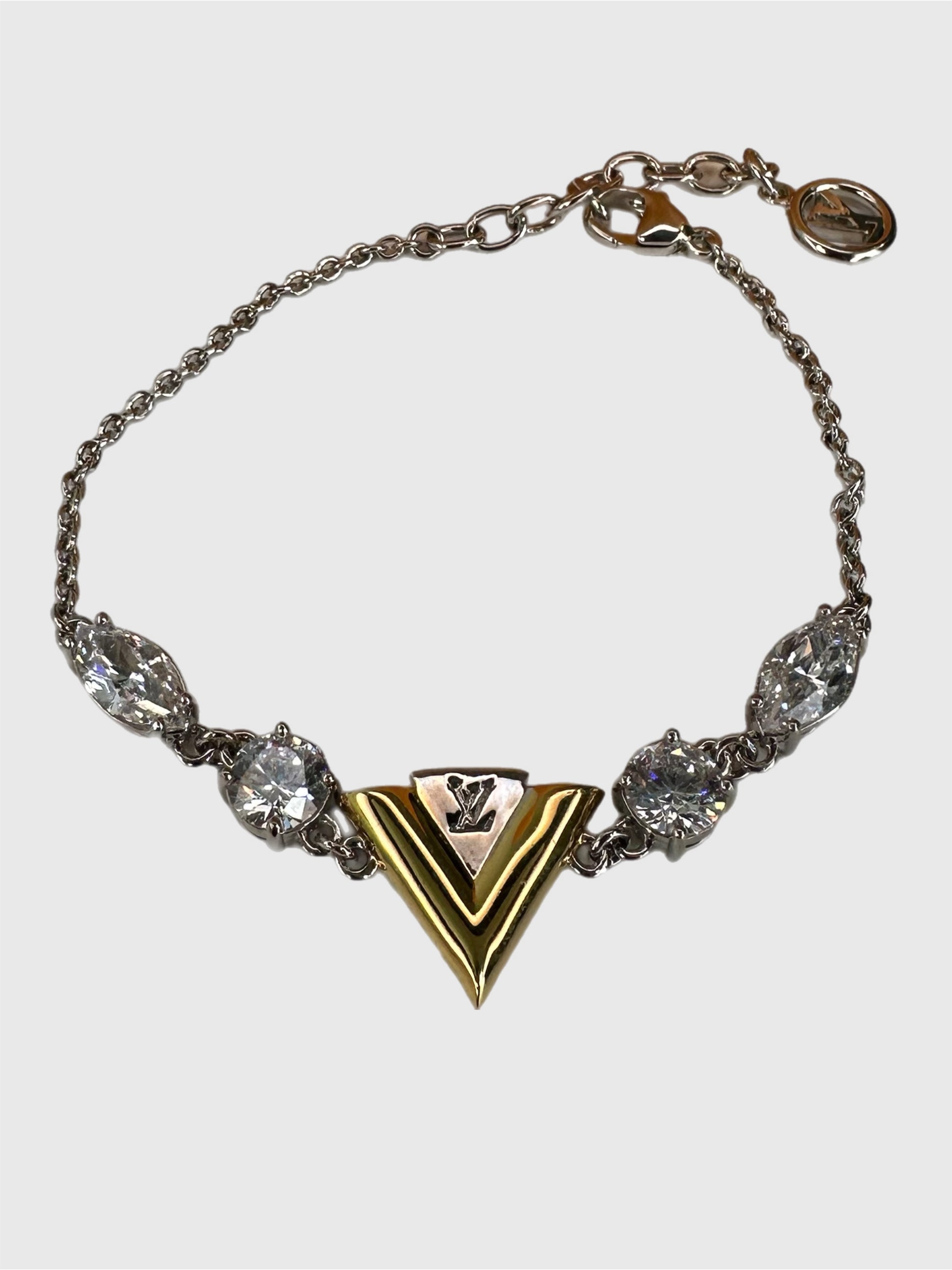 Louis Vuitton "V for Vuitton" Bracelet in Silver/Gold Tone with Crystals