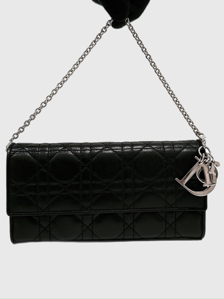 Christian Dior Black Cannage Leather Wallet On Chain WOC