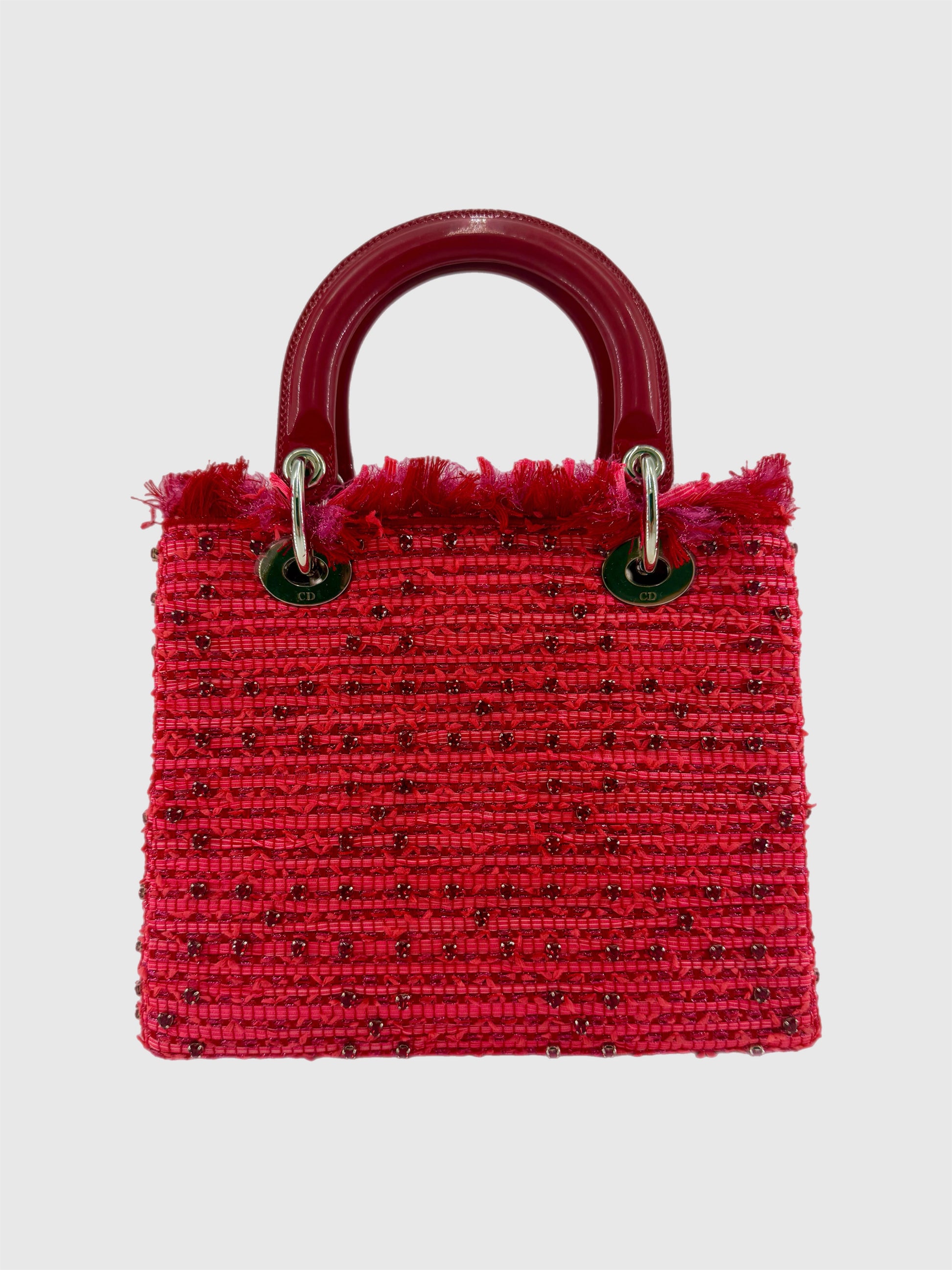 Christian Dior Lady Dior Red Tweed Medium Bag
