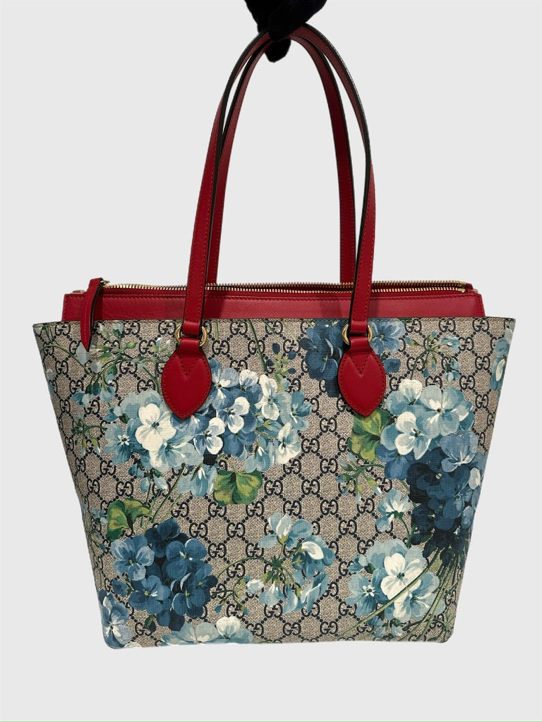 Gucci GG Supreme Canvas Blue Blooms Red Tote Bag