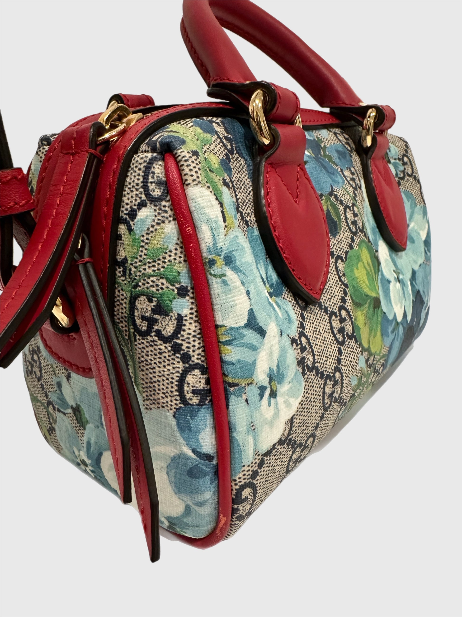 Gucci Blue Bloom Supreme GG 2way Canvas Bag Mini Boston Crossbody Handbag