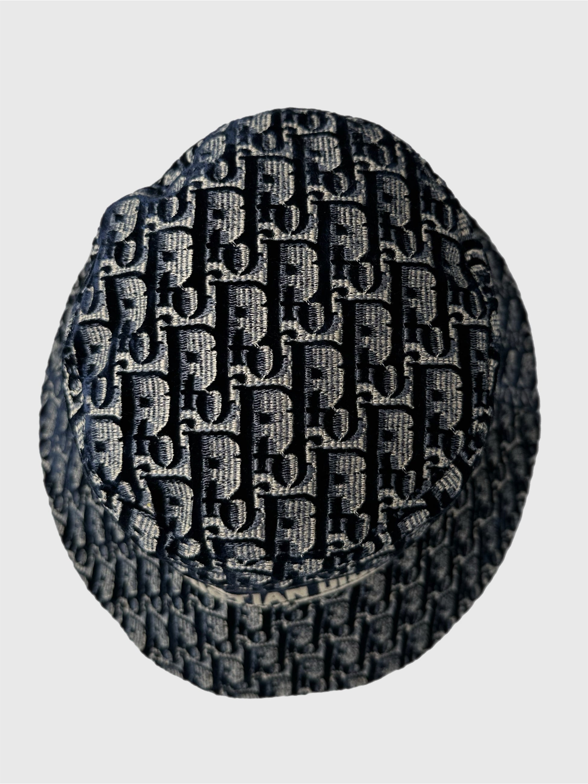 Dior Velvet Oblique Large Brim Bucket Hat Bleu Marine Size 58cm