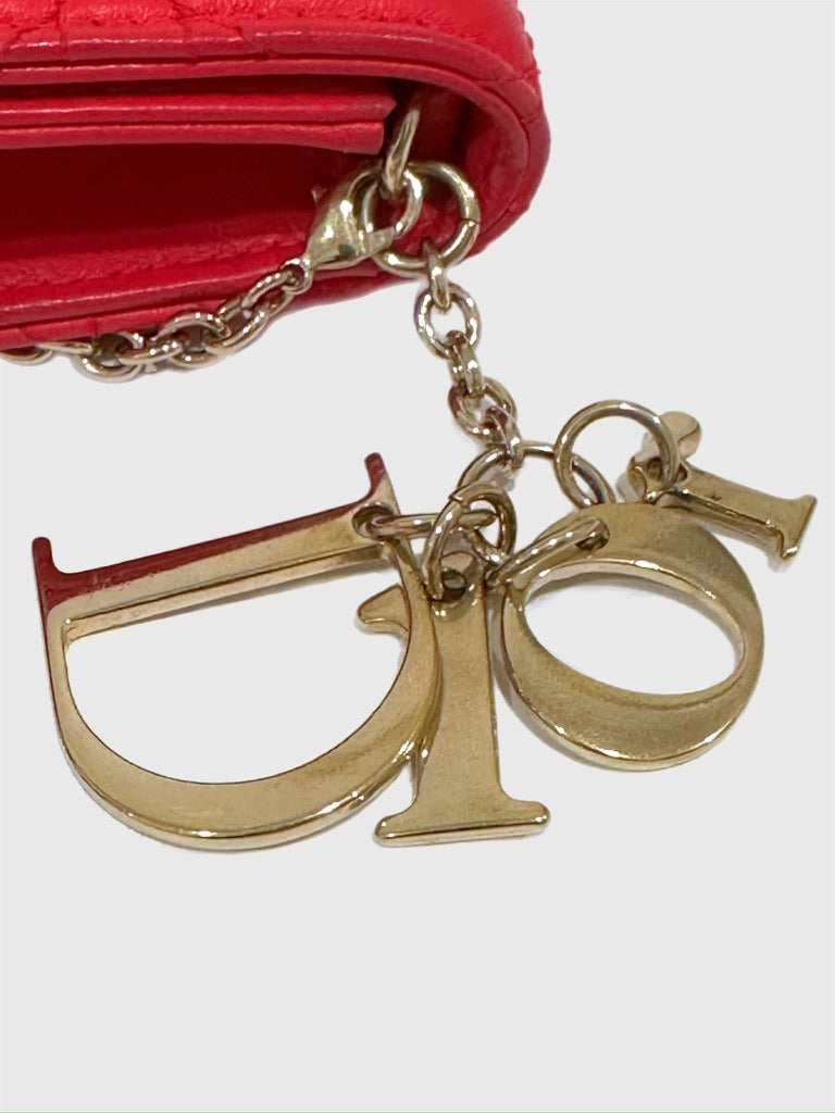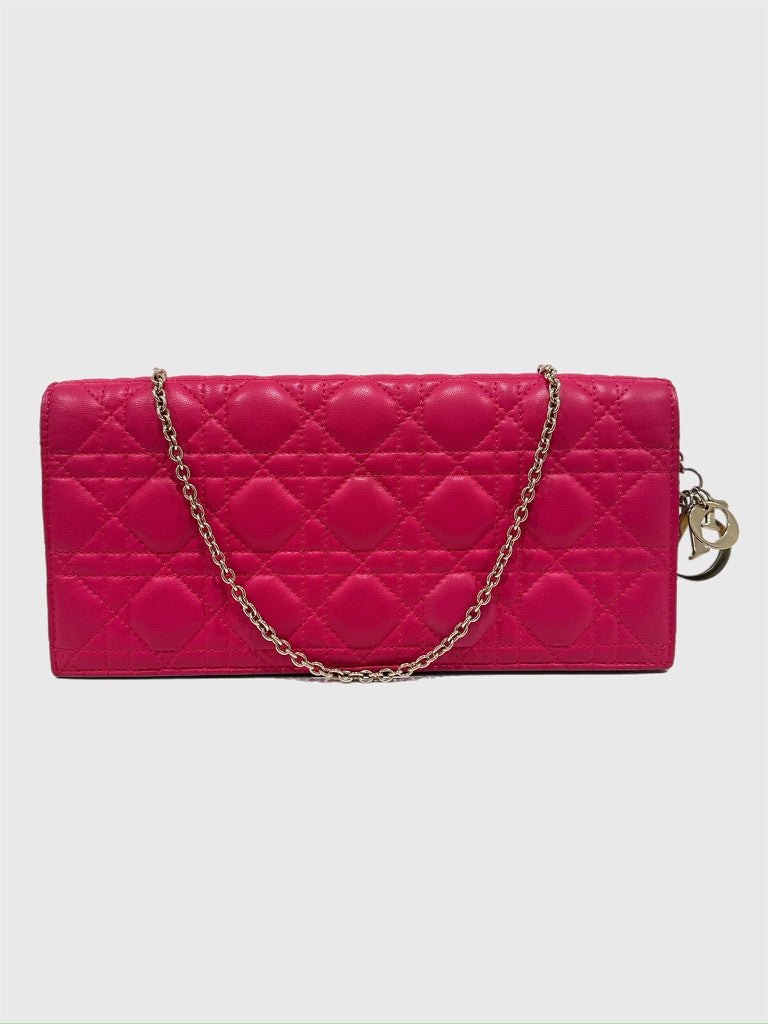 Christian Dior Fuchsia Pink Leather Cannage Crossbody Wallet on Chain