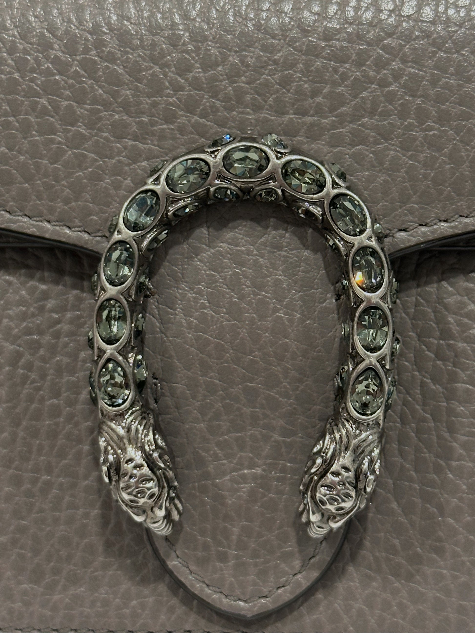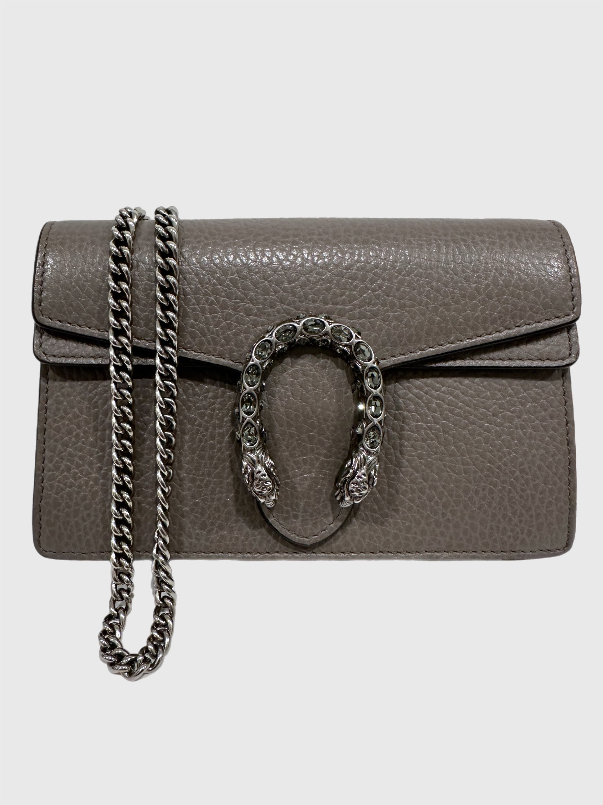 Gucci Gray Leather Crystal Dionysus Super Mini Bag