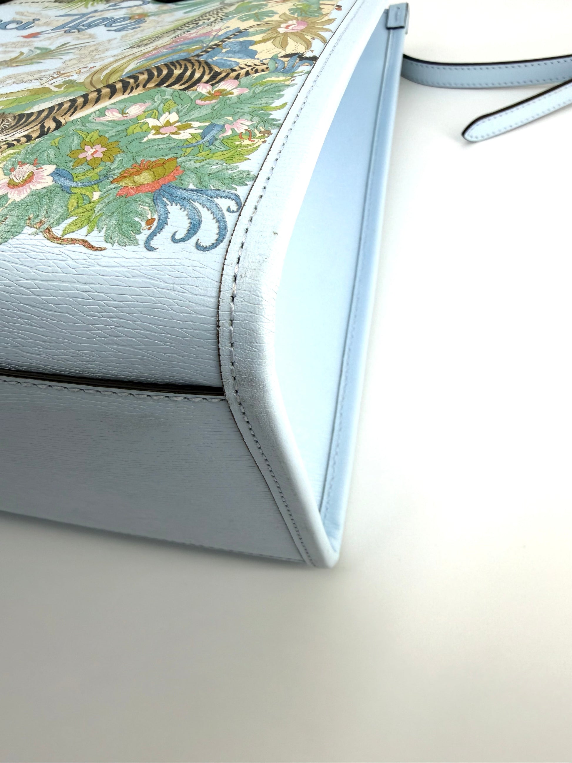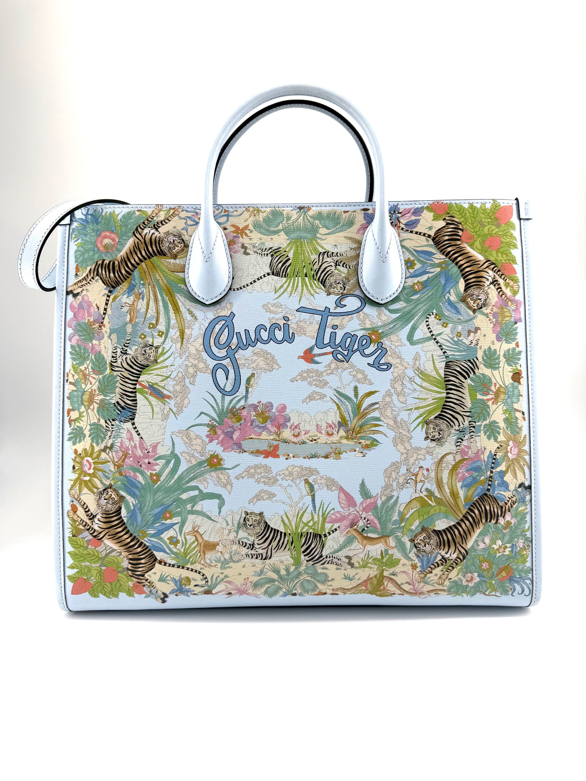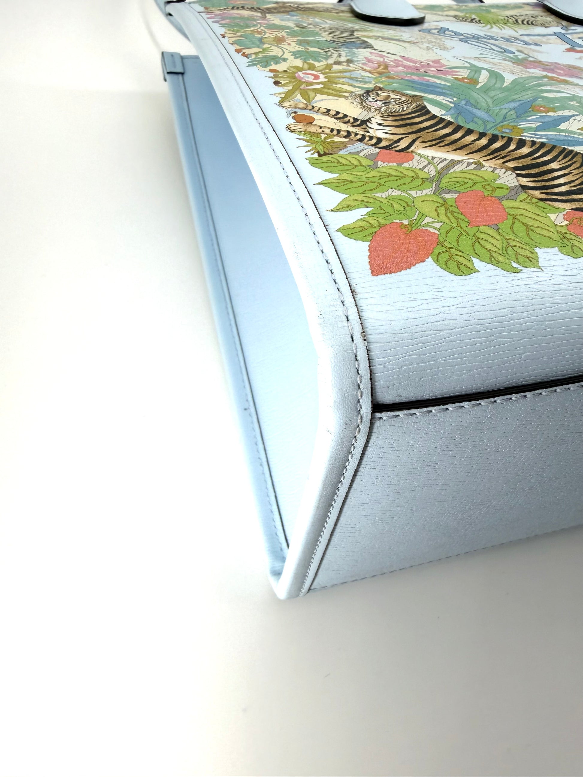 Gucci Tiger Blue Leather Canvas Tote Bag with Shoulder Strap