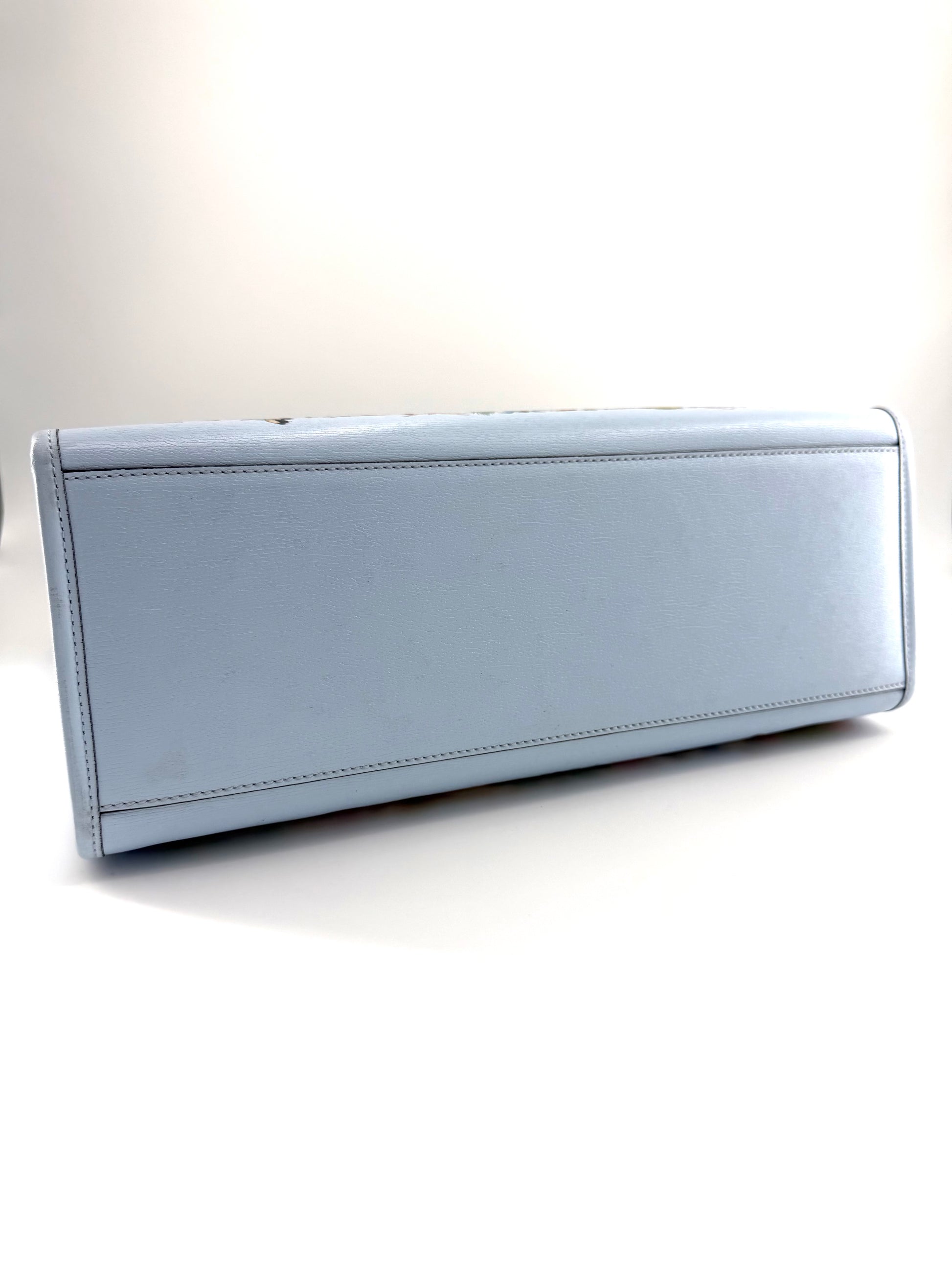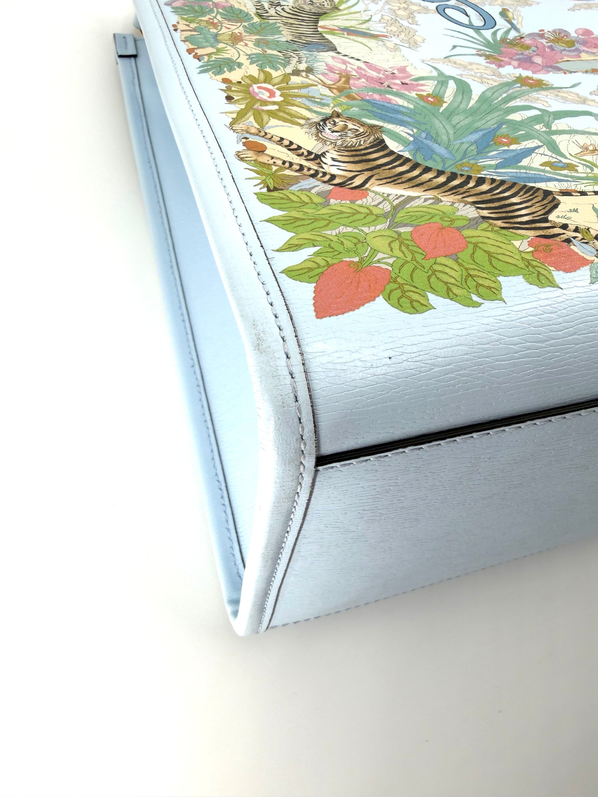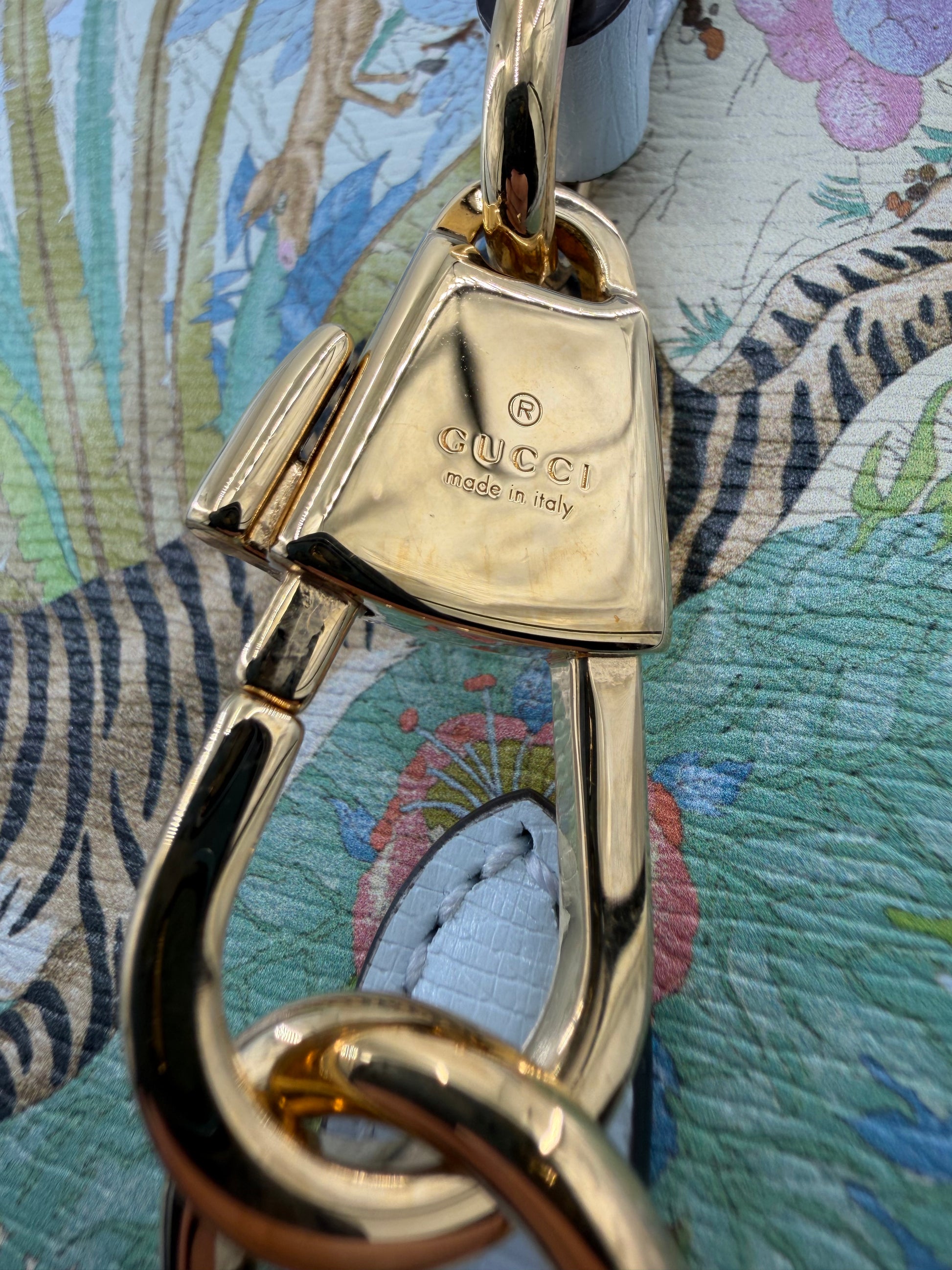 Gucci Tiger Blue Leather Canvas Tote Bag with Shoulder Strap