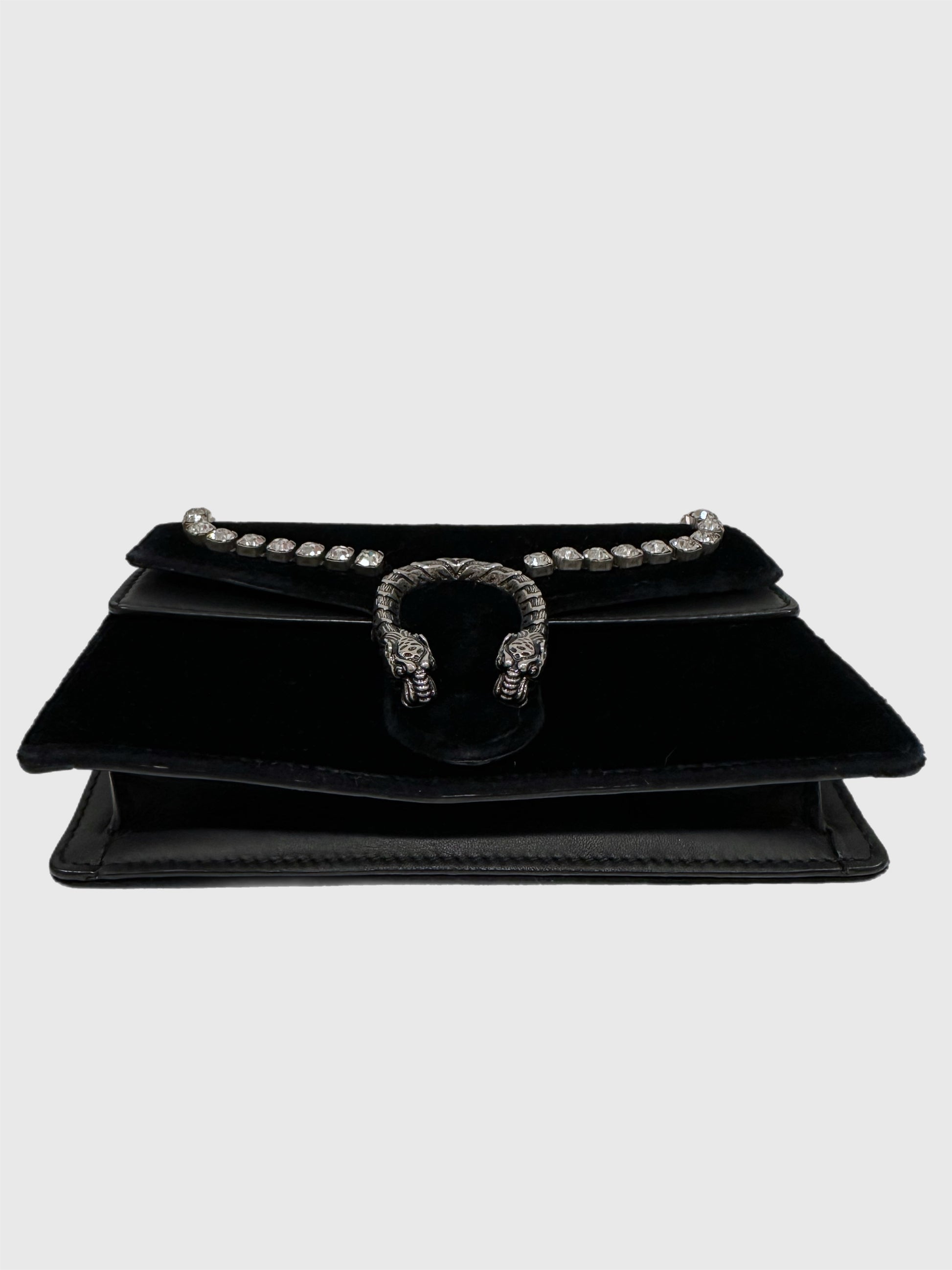 Gucci Black Velvet Crystal Dionysus Super Mini Bag