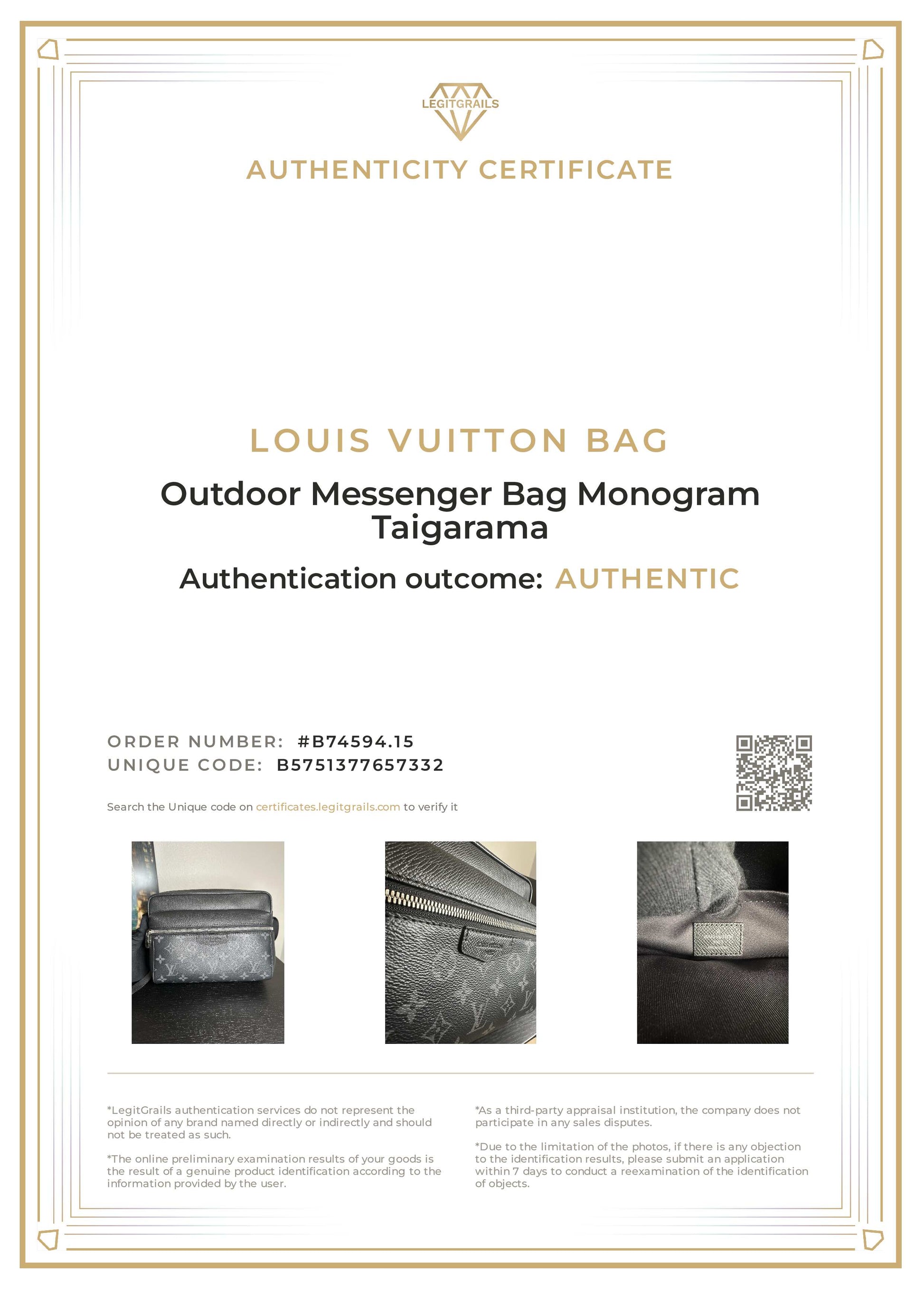 Louis Vuitton Outdoor Messenger Black Monogram Eclipse Taigarama Bag
