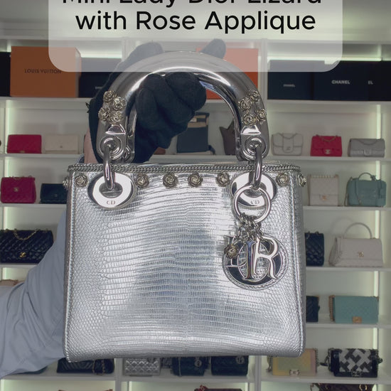 Lady Dior Mini Lizard with Rose Applique