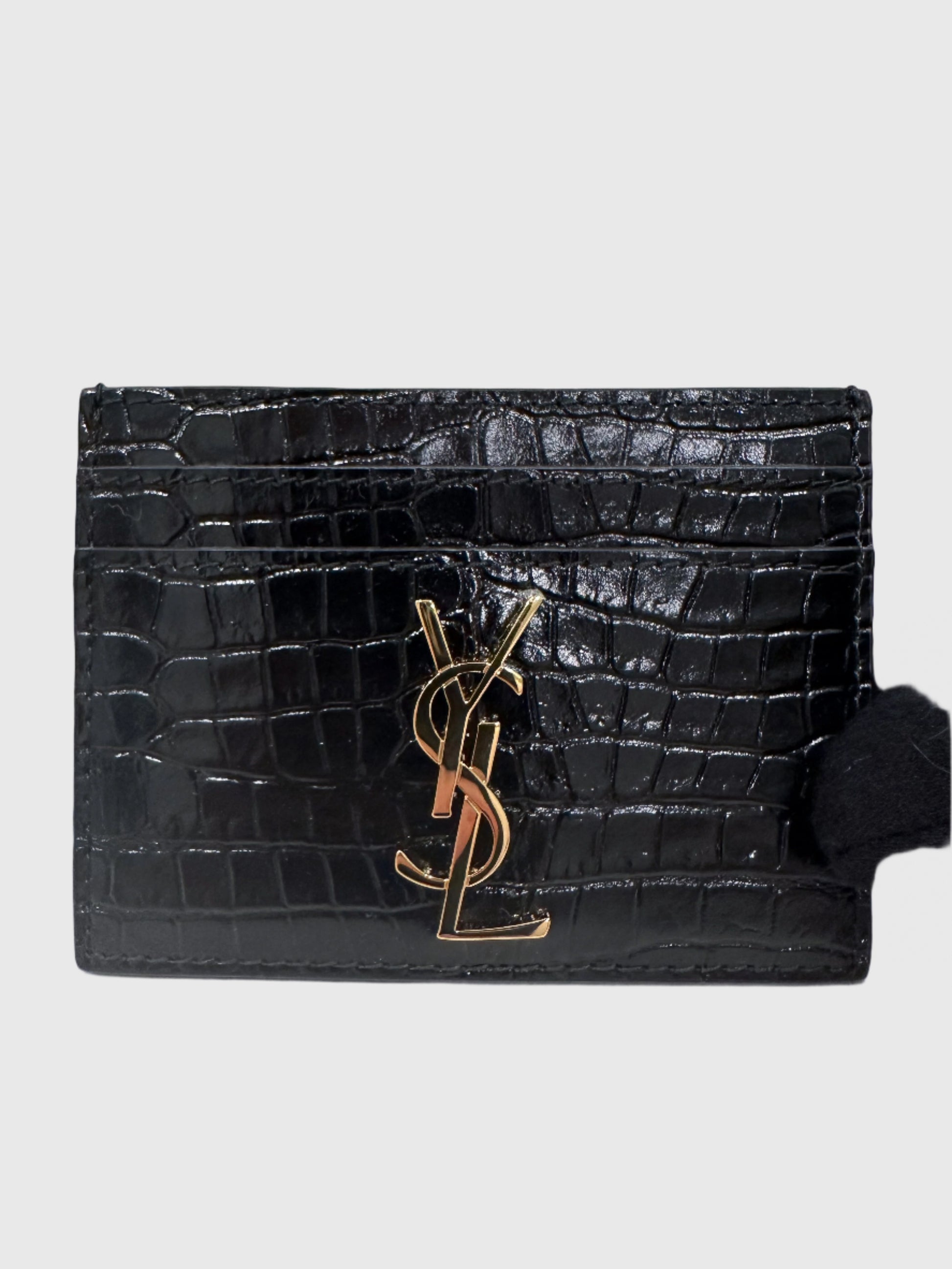 YSL Saint Laurent Cassandre Crocodile Embossed Leather Card Case
